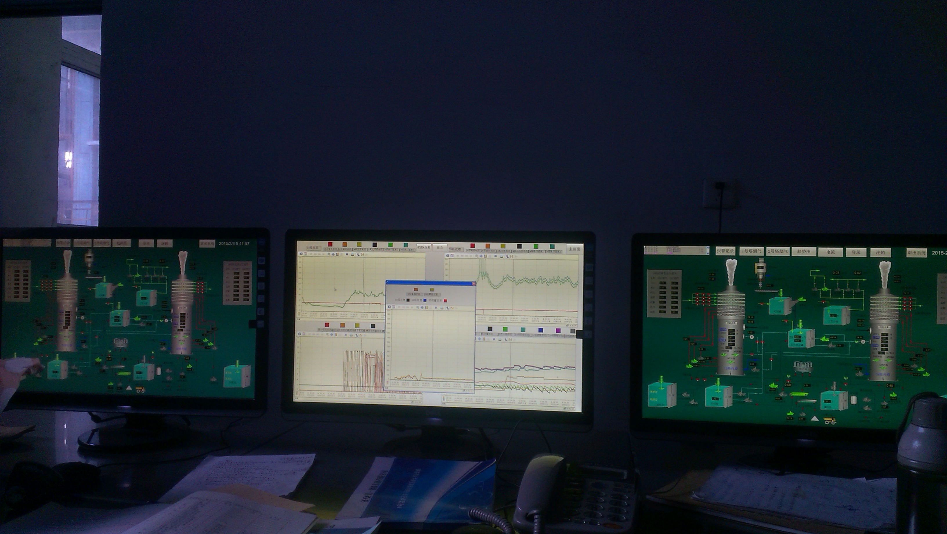 控制兩個(gè)脫硫塔,實(shí)現(xiàn)變量采集,監(jiān)控,歷史記錄查詢,報(bào)警記錄查詢,運(yùn)行狀態(tài)查詢,運(yùn)行曲線查詢,遠(yuǎn)控、運(yùn)行、故障三色狀態(tài)顯示,電壓、電流、頻率實(shí)時(shí)顯示,閥門手、自動(dòng),開、關(guān)狀態(tài)顯示。連鎖控制泵或閥門的自動(dòng)啟停、開閉。分畫面采用C語(yǔ)言制作彈出式窗口,工藝流程完全按照實(shí)際工藝走向設(shè)計(jì),在保證直觀監(jiān)控的前提下,力求畫面簡(jiǎn)潔易操作。