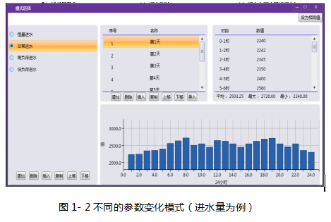 2、ProSee提供集成各類(lèi)輸入?yún)?shù)的可視化界面,允許用戶修改、保存當(dāng)前的參數(shù),并能自定義不同的參數(shù)變化模式(如:連續(xù)波動(dòng)的進(jìn)水量或恒定的進(jìn)水量,連續(xù)24小時(shí)波動(dòng)的進(jìn)水量),可切換和選擇不同的參數(shù)運(yùn)行模式。